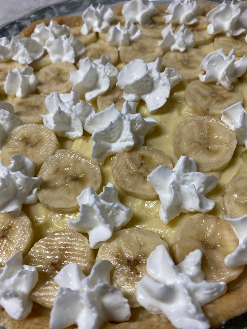 Of course, I asked my friend Nathan, whose birthday just passed, what his favorite cake was so I could make him his favorite! He responds… “I don’t like cake”. What a bummer. But he did proceed with, “but I do love banana cream pie.