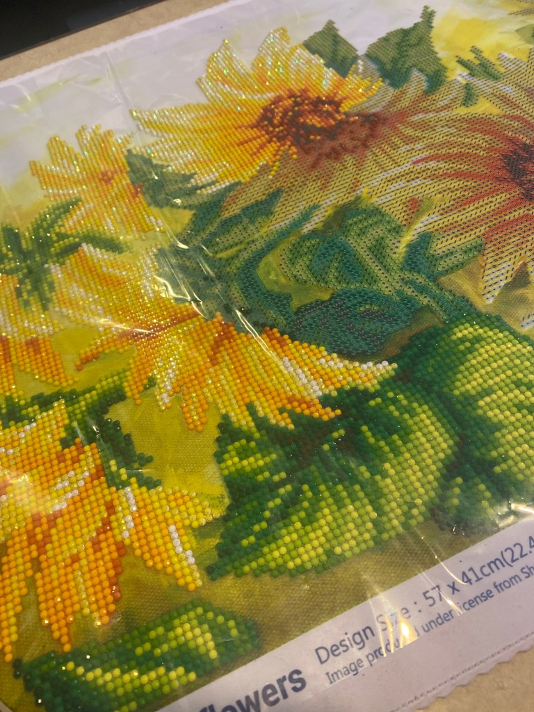 So I went to a craft store and found them. If you go to their website there are many more options of pictures but I wanted to get started. I loved this sunflower image and didn’t even pay attention to the “skill level”. So this is an advanced level image, which basically just means it is much bigger.