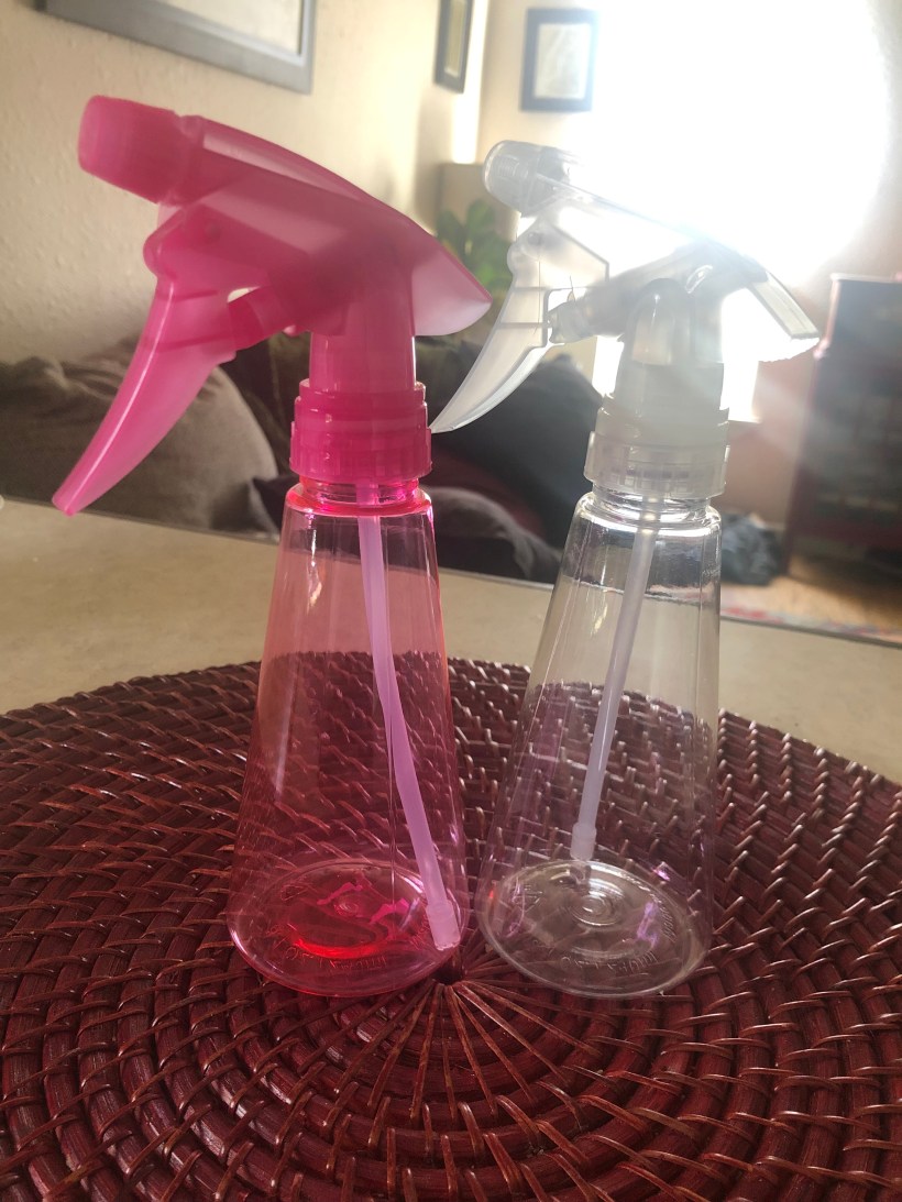 To make: to a spray bottle add ΒΌ cup white vinegar, 1 Β½ cups distilled water, and 25 drops lemon essential oil.